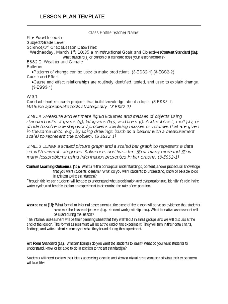 Application Name: Extended Lesson Plan Template Educational Assessment Lesson Plan